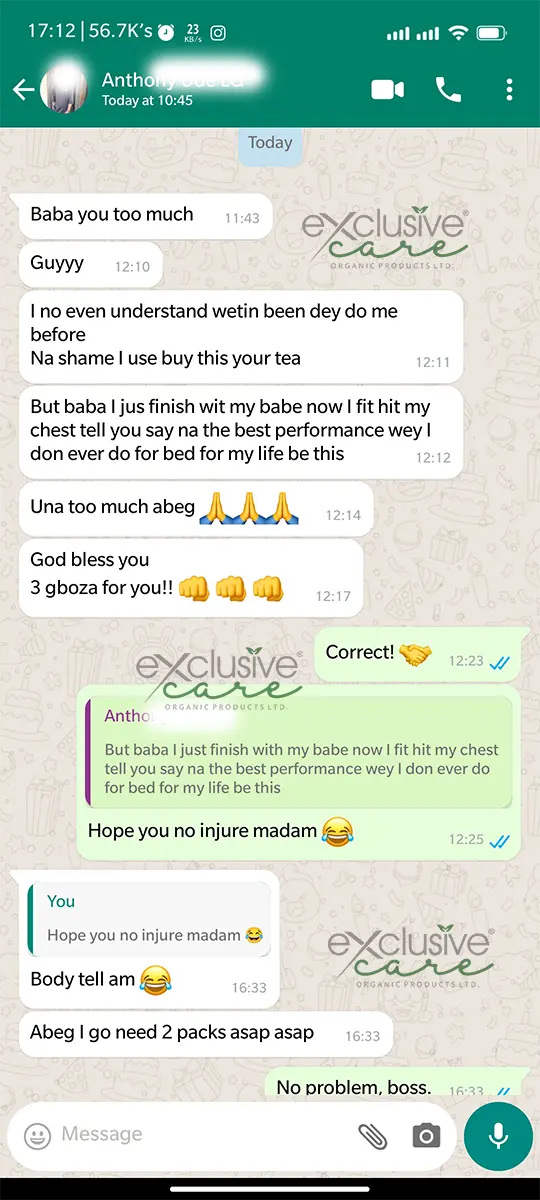 I continued with the tea, and things kept improving. The fear and anxiety that used to grip me before sex were gone. I was confident again, and our relationship grew stronger. We laughed more, talked more, and our intimacy returned.